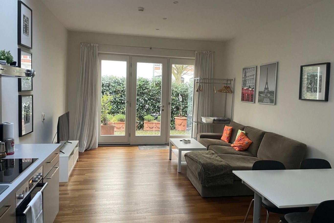 getrennter Wohn- und Schlafbereich, voll ausgestattete Küche, Spülmaschine, Badezimmer mit Dusche, Waschtrockner, Terrasse, Fernseher und W-Lan